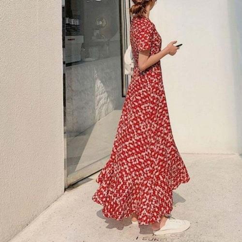 여름 원피스 플라워 반팔 휴양지 여성 롱 원피스 쉬폰