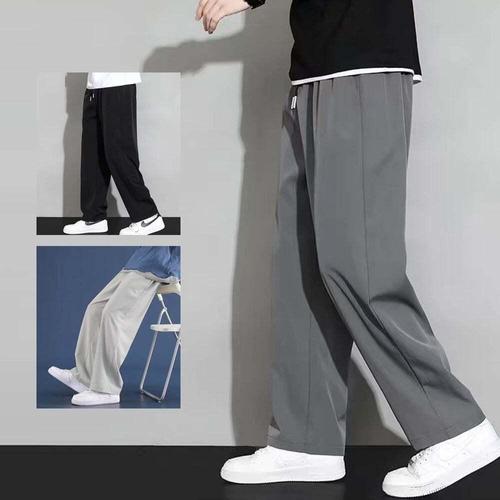 2023 뉴 여름 캐주얼 바지 남성 통기성 폴리 에스터 한국 패션 세미 와이드 밴드 허리 슬랙스 스트레이트 루즈 드레이프 바지
