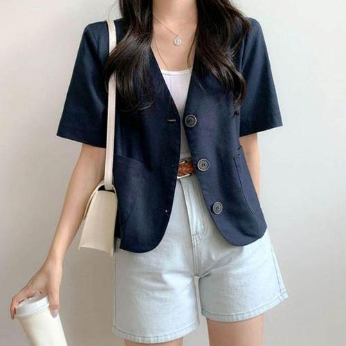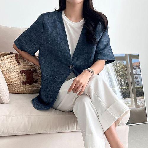 여성 린넨 버튼 크롭 반팔자켓 여름 정장 자켓