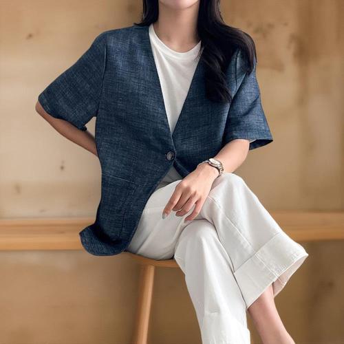 [옷자락]여자 롤업반팔 크롭 싱글버튼 여름 린넨재킷 자켓