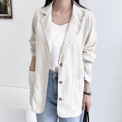 여성 여름 자켓 루즈핏 블레이저 데일리 여성 린넨 자켓 베이직 정장 세미