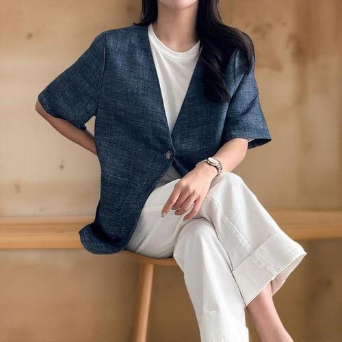 [신상오픈런]여성 린넨 브이넥 여름 자켓 투포켓 싱글버튼 하객룩