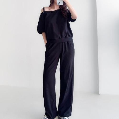 핫핑 [ITY원단] 썸머쿨터치 배색반팔티+밴딩와이드팬츠 투피스set