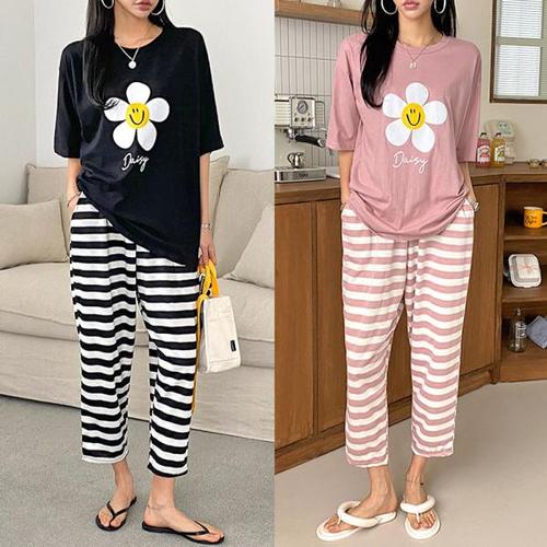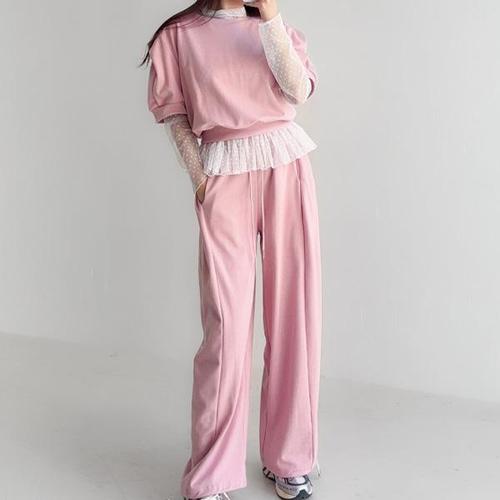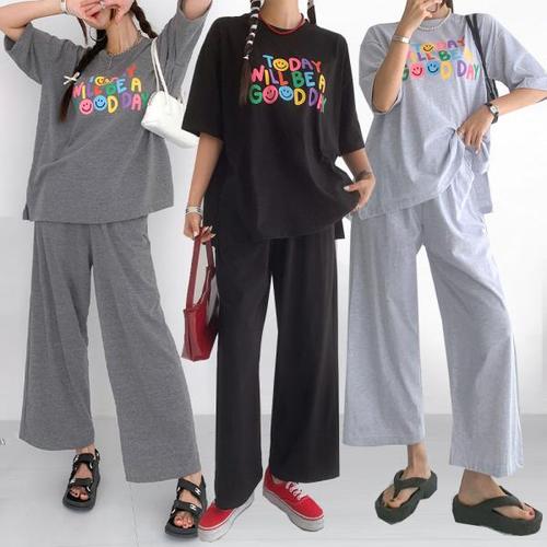 [유야]여성 면 반팔 티셔츠 와이드팬츠 츄리닝 세트 -FPST0088- 여름