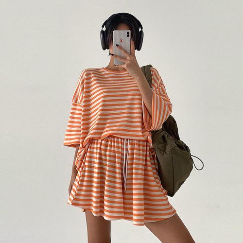 [유야]여성 면 단가라 반팔티 반바지 츄리닝 세트 -FPST0059- 여름