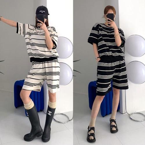 [유야]여성 단가라 반팔 티셔츠 밴딩 반바지 츄리닝 세트 -FPST0431- 여름