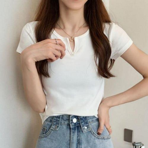 [오너클랜]인기상품 여성용 슬림핏 골지 반팔 크롭 티셔츠 봄여름용 무지 흰검 이너웨어 [WFLL9QN_260304]