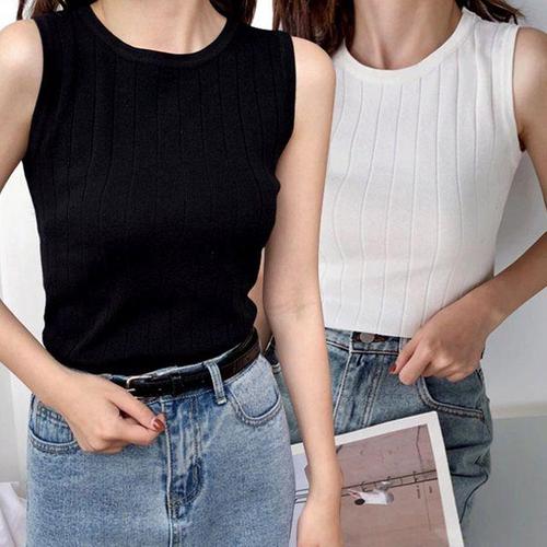(완전 편한) 1+1 날씬해보이는 여성 숏 브이넥 조끼 니트 스웨터 가을 겨울 신상 루즈핏 나시 간절기 언발티 무지 상의 우아한 이쁜 코디 기본 데일리 네이비 회색 민소매 니트티