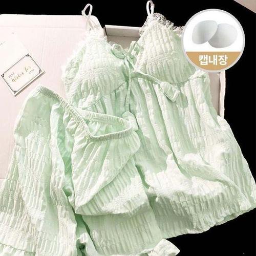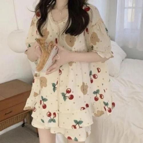 [셀러허브_여성트랜드패션]ONM 여름 여성 반팔 잠옷 세트 여자 주니어 파자마