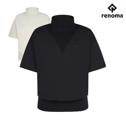 레노마1골프 여성 여름 져지 믹스 넥라인 절개 하이넥 티셔츠 HO/6106