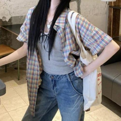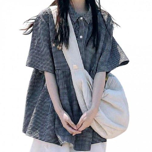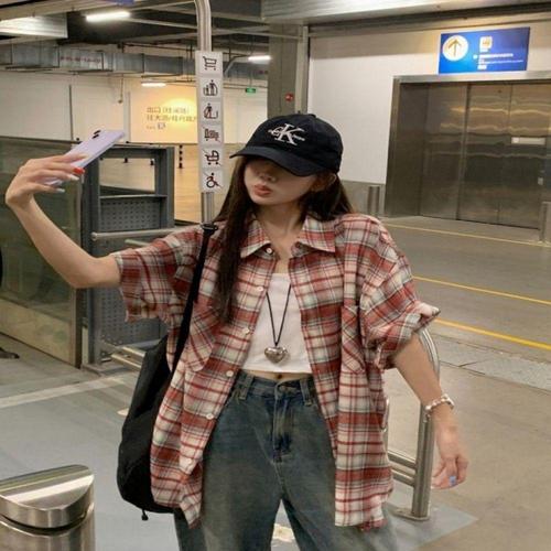 [오너클랜]인기상품 여성용 여름 오버핏 체크 반팔 블라우스 셔츠 [WFLI174_260227]