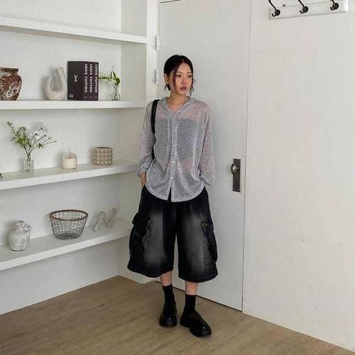 [에이치플러스몰]여름 시스루 브이넥 긴팔 루즈핏 가디건 쿨링 썸머