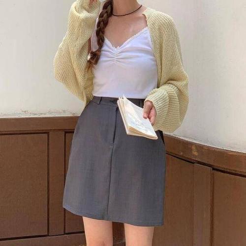 야오야오 주스 브이넥 얇은 니트 크롭 가디건