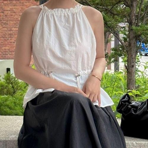 뒤트임 끈 티셔츠 여름 민소매 이너 바캉스룩