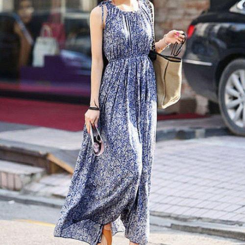 |KSO5607|여성 여름 휴가룩 장마 시즌 단가라 민소매 롱드레스