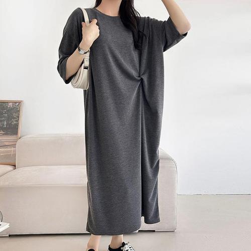 |KSO5978|여성용 봄여름 홈웨어 트위스트 반팔 빅사이즈 스판 롱드레스