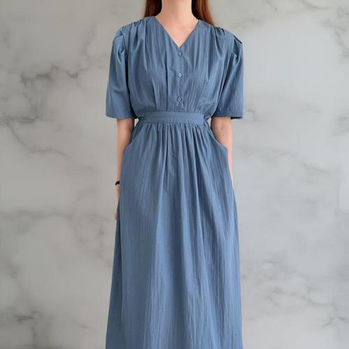 [옷자락]여자 캡소매 브이넥 빅사이즈 마실룩 여름 롱원피스