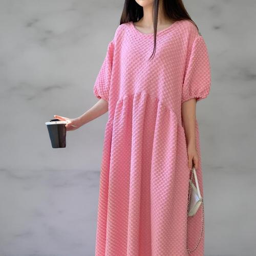 [옷자락]여자 셔링 빅사이즈 분홍색 임부복 여름 롱원피스