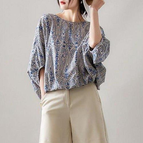 [오너클랜]인기상품 여성 여름 라운드넥 반팔 패턴 셔츠 블라우스 루즈핏 30대 여자 의류 [WFLL8GG_260304]