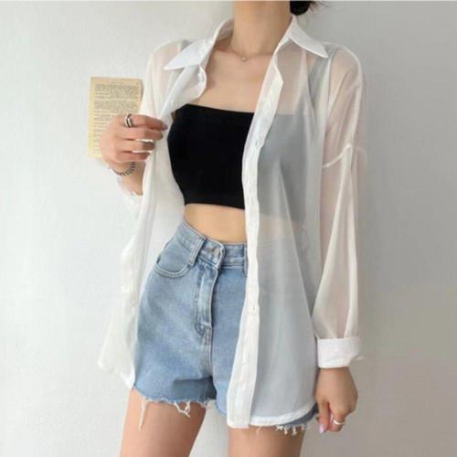 [오너클랜]인기상품 여성용 여름용 UV 차단 시스루 루즈핏 블라우스 데일리웨어 [WFLLATK_260304]