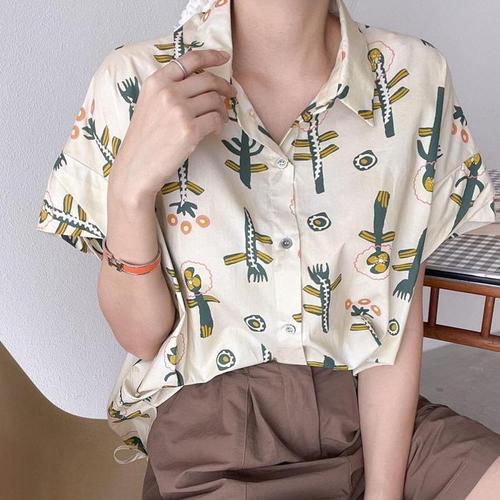 [다잇템]여자 비치룩 리본 썸머 카라 나염 블라우스 (10271046B)