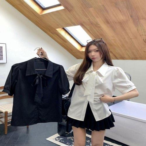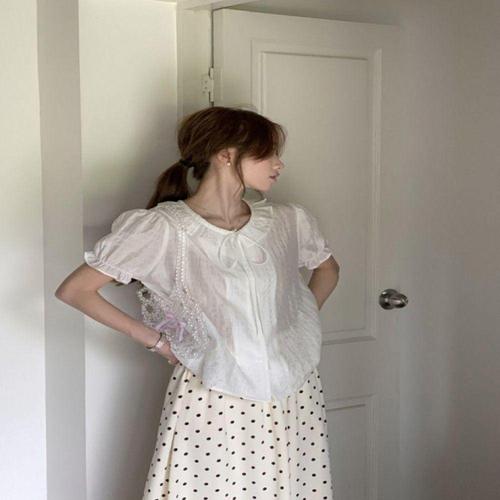 [오너클랜]인기상품 퍼프 반팔 여성 블라우스 리본 장식 여름용 [WFLL9Z5_260304]