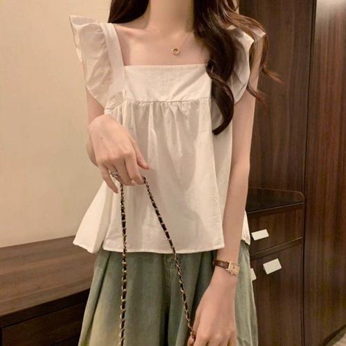 [오너클랜]인기상품 여성 여름용 프릴 스퀘어넥 백 리본 나시 블라우스 [WFLKR6E_260303]