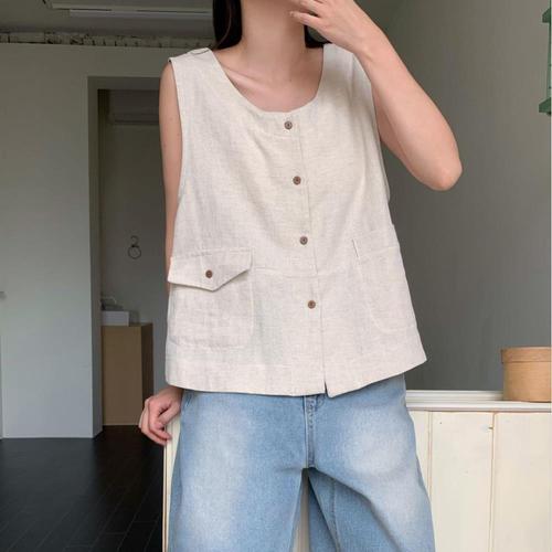[옷자락] 여자 여름 린넨베스트 언발 포켓 버튼 여름 휴가룩 조끼