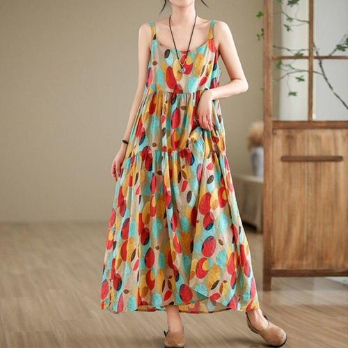 데일로엔 여성 여름 휴양지 린넨 플리츠 롱 원피스 루즈핏