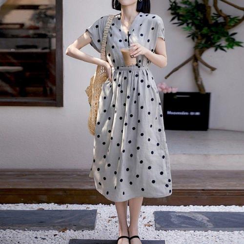 [오너클랜]인기상품 린넨 소재 도트 패턴 여성 루즈핏 원피스 여름 데일리 드레스 [WFLL91T_260304]
