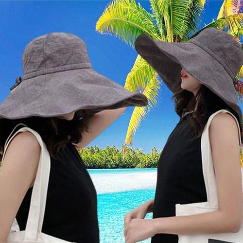 [BZJKO8QV_4B]휴대용 린넨모자 썬캡 넓은챙 여름 햇빛차단