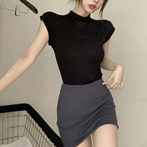 여성용 섹시한 터틀넥 민소매 티셔츠, 단색 슬림핏 풀오버, 캐주얼 티셔츠, 여성 스트리트웨어 기본 티, 여름