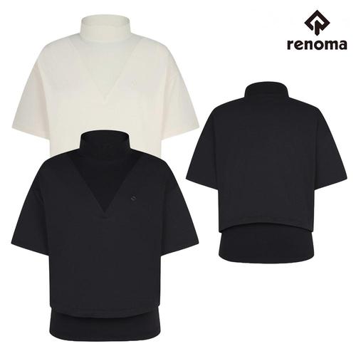 레노마1골프 여성 여름 져지 믹스 넥라인 절개 하이넥 티셔츠 HO/6106