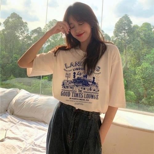 [엄지척]여성 여름 루즈핏 프린팅 반팔티 박스티 반팔 티셔츠_19614345_667501