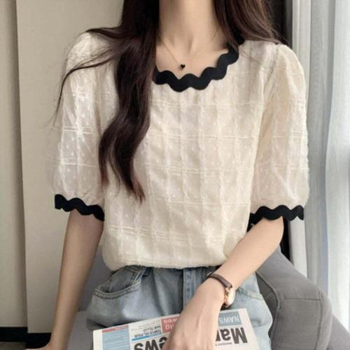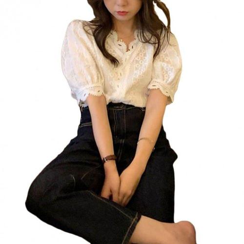 [오너클랜]인기상품 여성용 여름 레이스 반팔 셔츠 캐주얼 퍼프 블라우스 [WFLLLTP_260305]