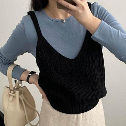 [오너클랜]인기상품 여름 니트 뷔스티에 조끼 여성 시원한 레이어드 카라 티셔츠 [WFLHVFA_260227]