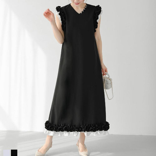 플로렌 / 심플 블랙 프릴 원피스 여름용