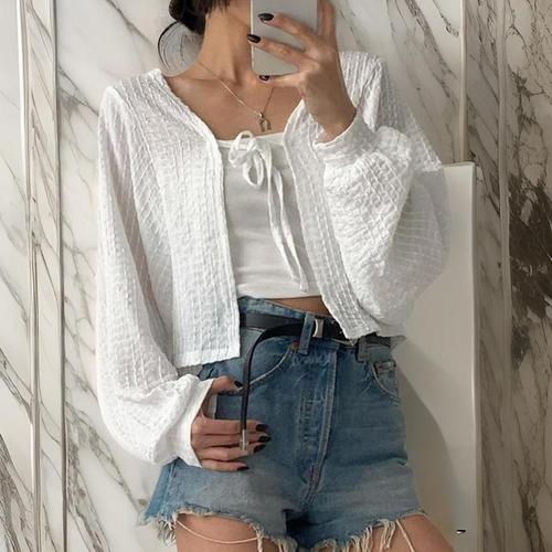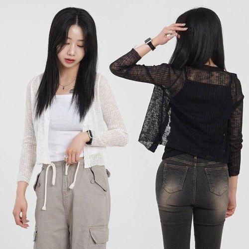 [화이트빌딩]시스루 가디건 여름 썸머 얇은 긴팔 가디건 숏 크롭
