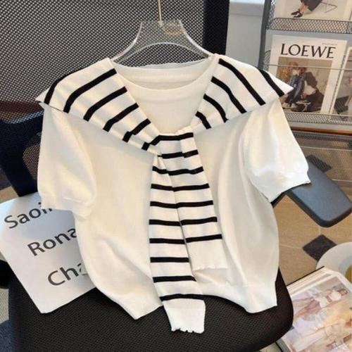 [셀러허브_여성트랜드패션]ONM 숄 여성 스트라이프 여름 반팔 니트 세트
