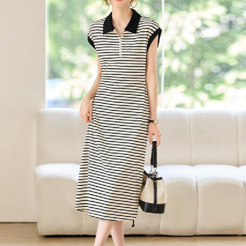 [모노무드]모노무드 SDGE-8663 여성 카라 스트라이프 반팔 롱원피스 1P 여름 데일리