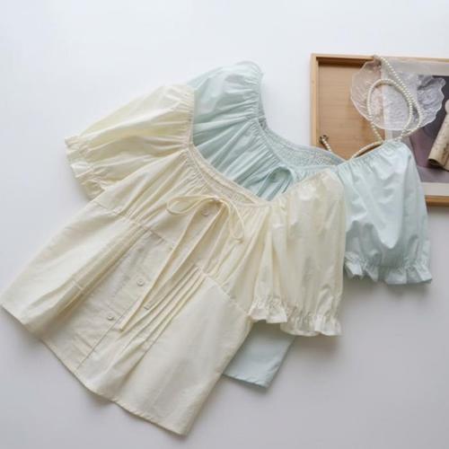[신상오픈런]여성 여름 시즌 스퀘어넥 퍼프 소매 반팔 블라우스 휴가 스타일 (46199357)