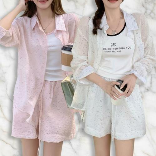 [신상오픈런]여성 여름 캐주얼 블라우스와 반바지 세트 (45269003)