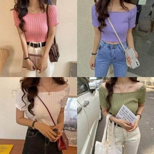 [엄지척]니트 김유정옷 가을 스퀘어넥 여름니트 여름 반팔 골_19681702_667501