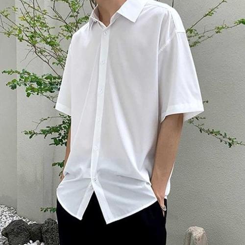 남자 여름 루즈 오버핏 릴렉스드 청 데님 반팔 셔츠 남방