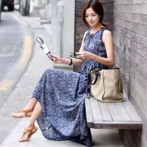 [모노무드]모노무드 DONA06261 여성 민소매 여름 바캉스룩 롱 주름 쉬폰 원피스