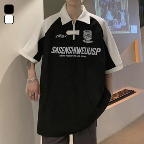 [리빌모아]여름 남자 스트릿 배색 카라 반집업 반팔 티셔츠 DMS-TSH-SBM032