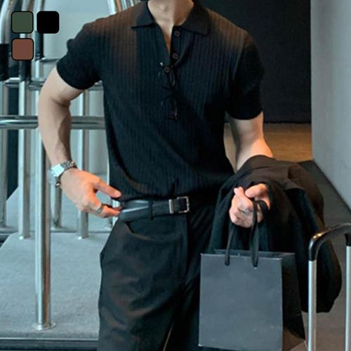 [리빌모아]여름 남자 심플 골지 솔리드 카라넥 반팔 티셔츠 DMS-KAH-SBM003