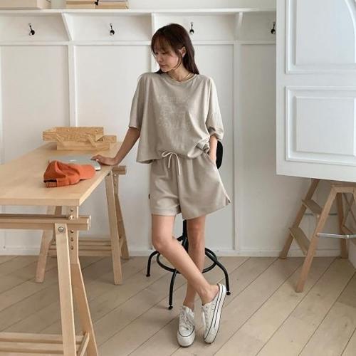 여름 실내외 편한 여성 반팔 반바지 트레이닝 셋업