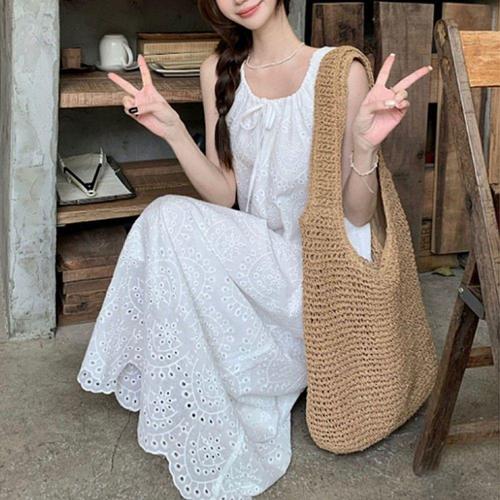 [오너클랜]인기상품 여자 여름 롱 원피스 스트링 펀칭 리본 드레스 [WFLI23L_260228]