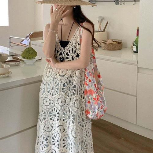 [에이치플러스몰]썸머 캐미컬 니트 펀칭 나시 원피스